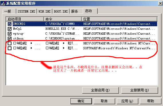 不知道为什么就出现这个东西了,在注册表里删了一开机又出现.在misconfig里禁用了一开机又出现......