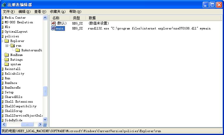 删除<main><rundll32.exe "C:\program files\internet explorer\use070108.dll" mymain>