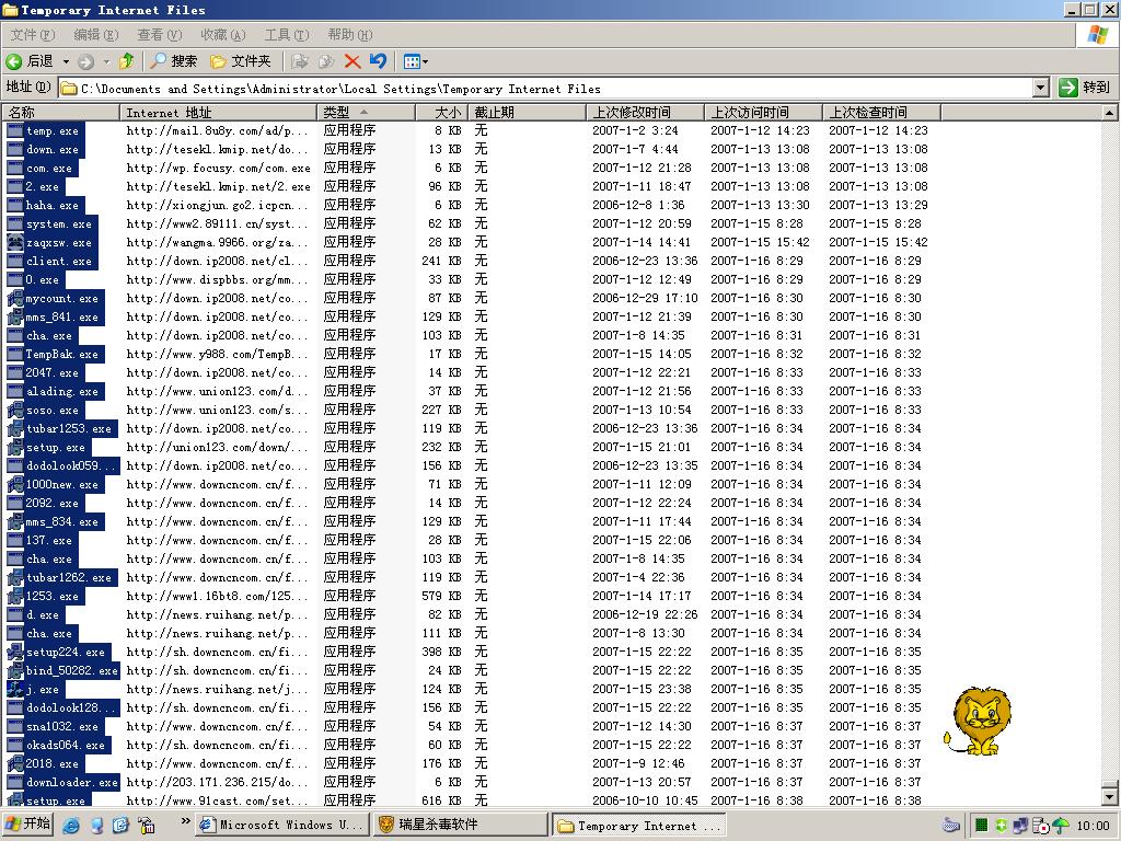 小狮子正在边上开心地看着,,我也无耐地看到一些EXE程序在我临时文件夹里面呢。。