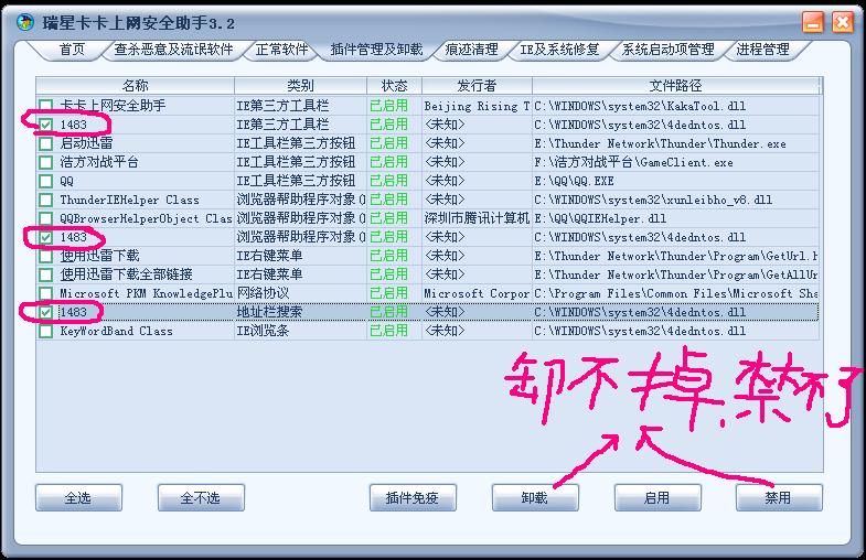1483 IE 插件卡卡删除不掉