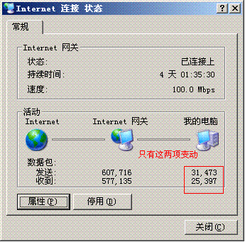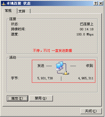 本地连接不明原因不停向外发送数据包,从INTERNET连接可看出是向外发送数据包
