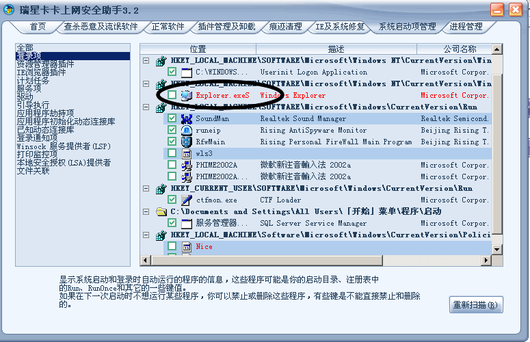 用卡卡扫描,发现有一项起动