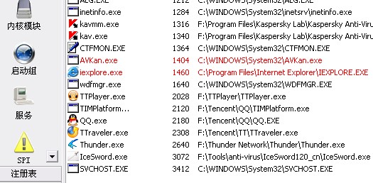 下面是我在冰刃里抓的图,大家看看红色的进程是否是病毒!!!
