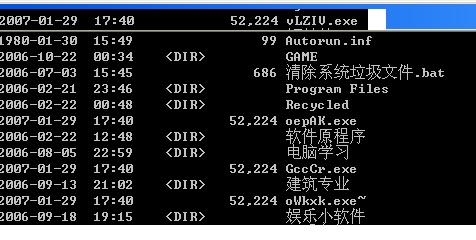 1 怎么删除 如 vLZIV.exe 这些病毒 用命令DEL 和DELTREE删不了 把隐藏 全开了还是看不见,只能用DIR/A才能看见