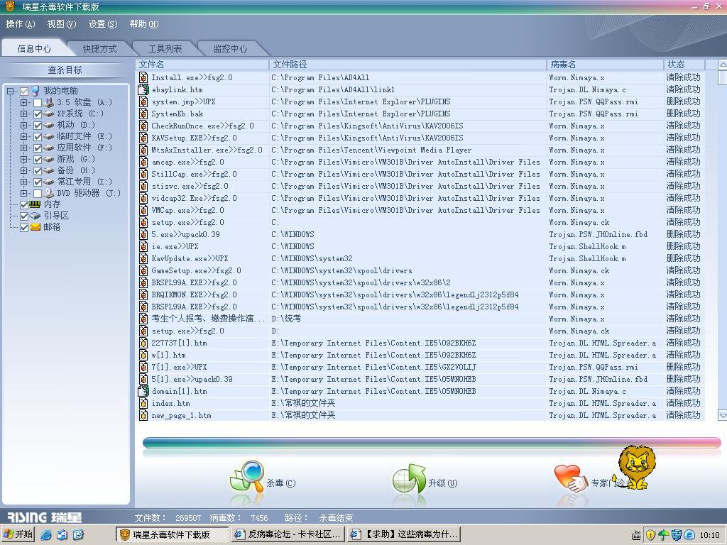 瑞星卡卡安全论坛技术交流区反病毒/反流氓软件论坛 【求助】这些病毒为什么总是杀不完
