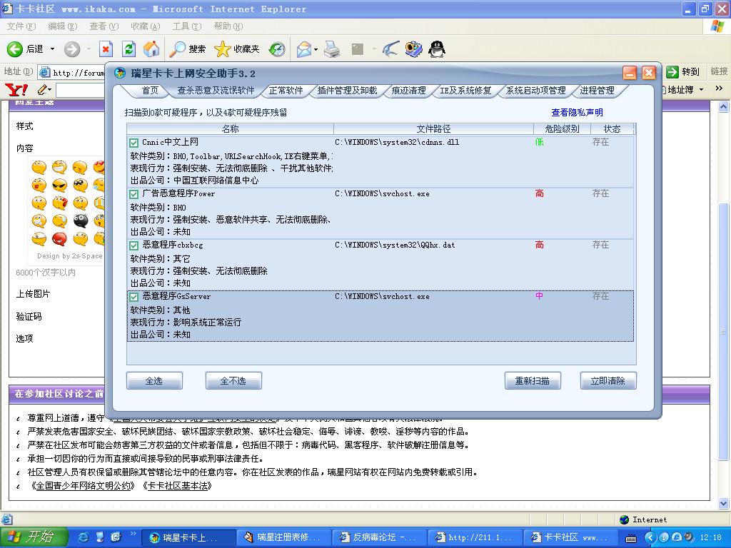 应该是这个图,是KAKA的扫描结果.这几个不是清楚不掉,就是说重启动的时候清楚.可重启就蓝屏,RESET后就还是这样.
