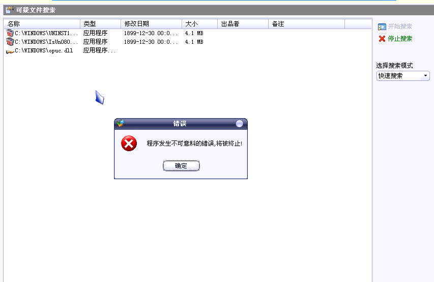 偶用卡卡和360查不出任何问题,但一用恶意软件清除助手扫描可疑文件,立马就提示错误退出!!!!!!!!!!!!!!!!