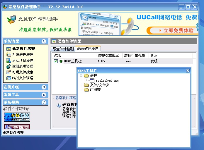 每次开机用恶意软件清理助手都能查到也能删除,删除后再查就没了,清空临时文件夹后重新启动电脑再查还有,就是不能真正删除掉,用瑞星卡卡查不出来!请帮忙!