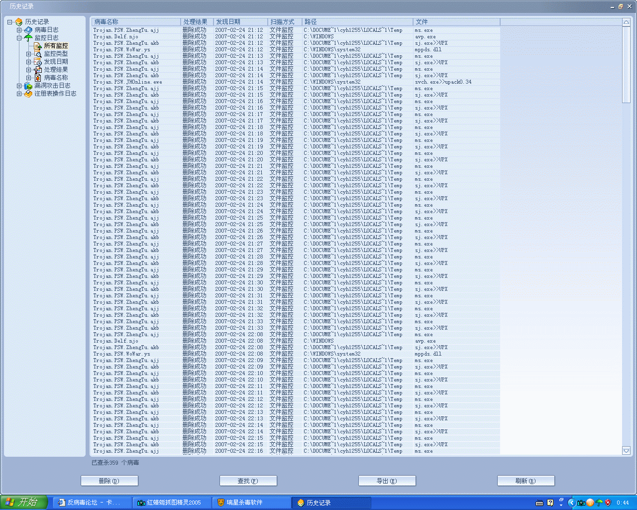 但瑞星老报有病毒(MS.EXE SJ.EXE HH.EXE gg.exe mh.exe qq.exe rx.exe瑞星杀了又从建在TEMP