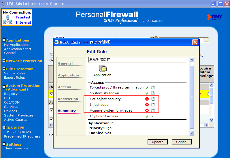 具体的防护,靠Tiny和SSM。Tiny若干关键防护设置见附图。