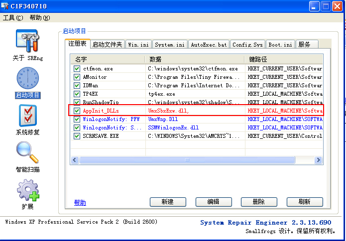 我把这一项清空后,再把TINY修复安装了一下