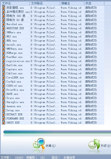 装完系统后就杀毒了,然后上面的一群就都被当成worm.viking.od来杀了 超郁闷啊