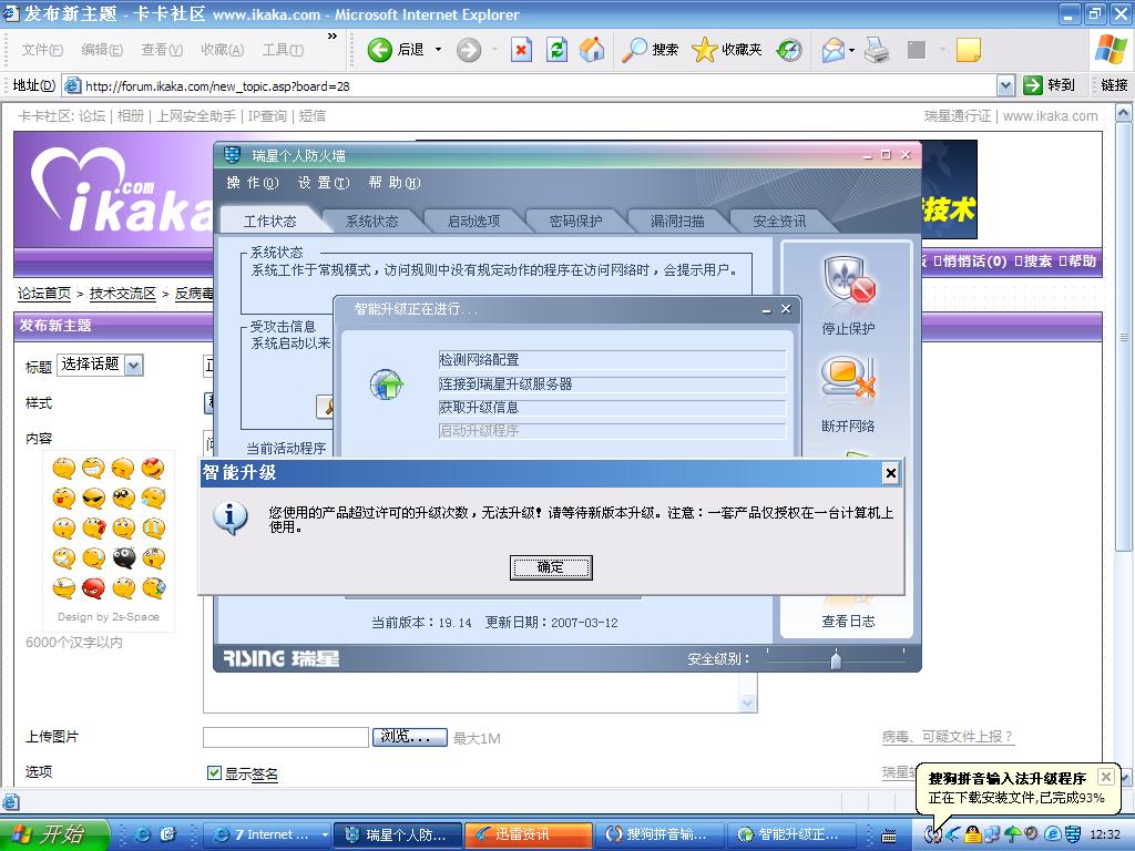 我今天电脑格式化了两次,再升级时,(防火墙)发出下图.