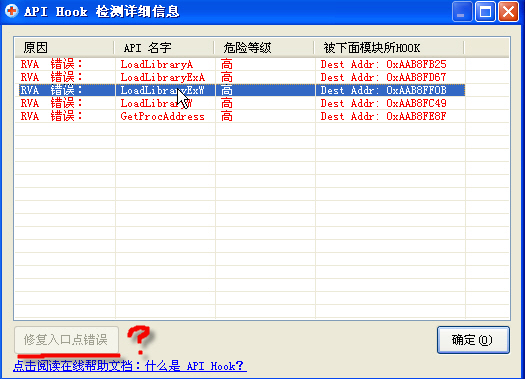 RVA 错误: GetProcAddress (危险等级: 高, 被下面模块所HOOK: Dest Addr: 0xF108AE8F)