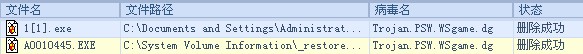我在登陆火影忍者网站时中的,因为我经常去哪个网站看火影所以因该不是哪个网站发的,可能是被别人恶意中的,我正在看说明时机器自己重启,启动完后我立刻拿瑞星扫,杀了一个,我把C盘目录下另两个给粉碎了。现在还正在扫中,我列出日志麻烦斑竹给看看!!