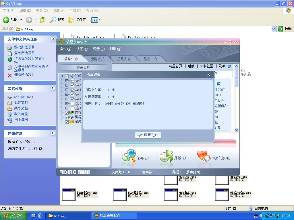 【ppbird的贴子】更新了也没有用。我更新后仍然杀不下去。等我用冰刃和autoruns手动杀毒后。瑞星很威风的发现了所有的病毒尸体……