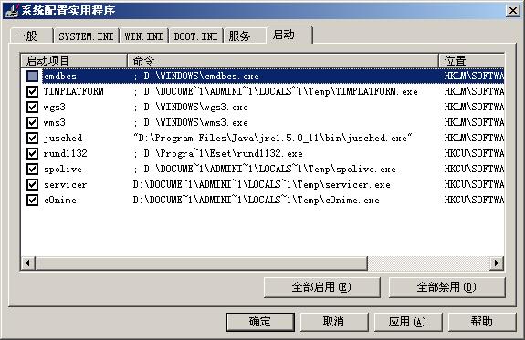 偶然打开我电脑的MSCONFIG的启动项一看(附图)