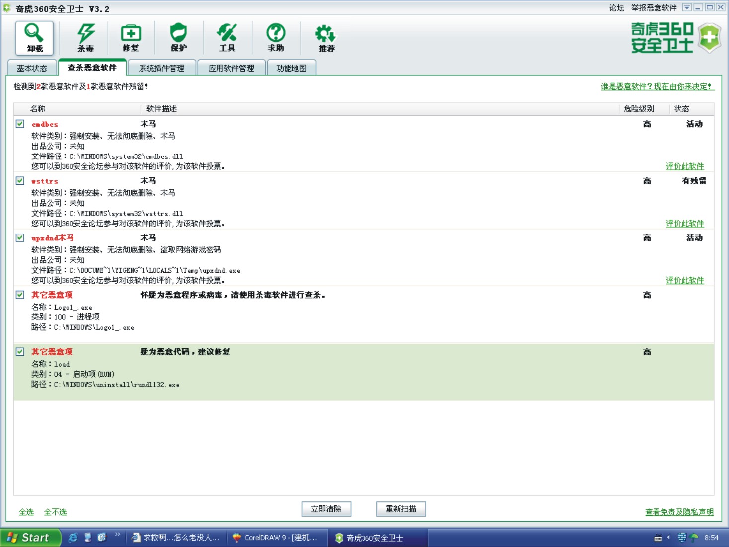 进入 安全模式 运用SRE进行扫描, 日志完整贴上来