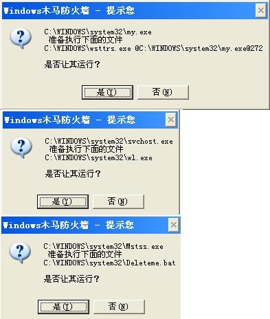 wsttrs这几个病毒,其中Deleteme.bat和wsttrs我已经找到杀毒方法了。可mstss.exe;wl.exe;my.exe没找到什么好办法。