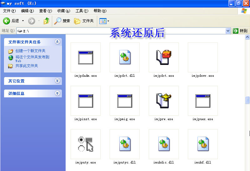 如果XP系统用户事先设置了干净的还原点,中了这只兔子后,执行“系统还原”可以搞掂这只带鸽子的兔宝宝(图3、图4是系统还原前后的对比)。