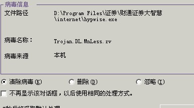 大智慧里有Trojan.DL.MnLess.zv 木马,求助高手!