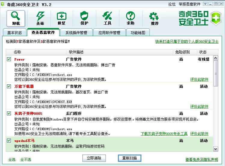 查杀恶意软件 - Power - 危险 - C:\WINDOWS\svchost.exe