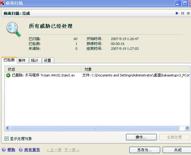 卡巴报卡卡有病毒!!!如图: