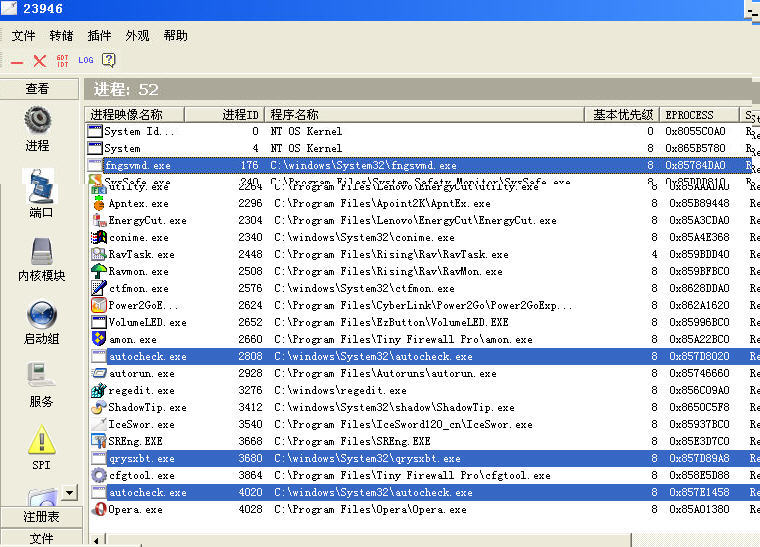 此病毒可能是某种u盘病毒,但我是在浏览网页时中的。中毒之后,瑞星被删,看不见隐藏文件。无法上网找任何与瑞星有关的网页,无法登陆瑞星网站。无法启用其他辅助杀毒工具。无法进入安全模式!。现在不可能发送日志和样本,目前本人已受到一定损失,急求版主和各位高手帮忙。