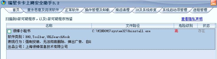 卡卡助手将万象网管客户端卸载程序 c:\windows\system32\uninstall.exe误认为是很棒小秘书杀.