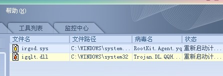 救助Rootkit.Agent.yq 和Trojan.DL.QQHelperJ.a