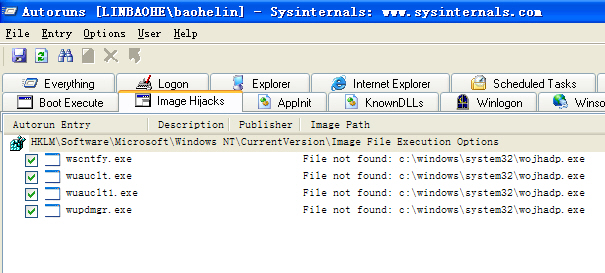 于是,一个灵感浮现在脑中:如果病毒通过IFEO劫持XP系统的“WINDOWS UPDATE”和安全中心程序如何?