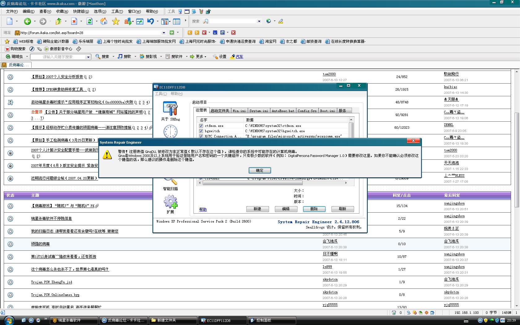 瑞星卡卡安全论坛技术交流区反病毒/反流氓软件论坛 我的扫描日志.请帮我看看还有余孽吗?在线等.谢谢您