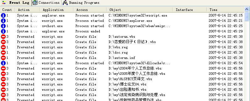 这种通过wscript.exe运行的脚本病毒,Tiny不会有任何提示,直接就开干了。