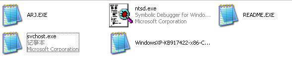 大部分的EXE文件被感染成"记事本"图标.(有的图标变花了,有点象VKING)(常用的最先感染!)