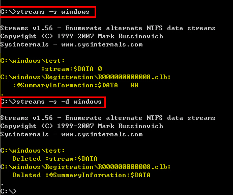 streams可以发现,也可以删除。只是————streams需要在“命令提示符”环境下使用,需要熟悉DOS命令。