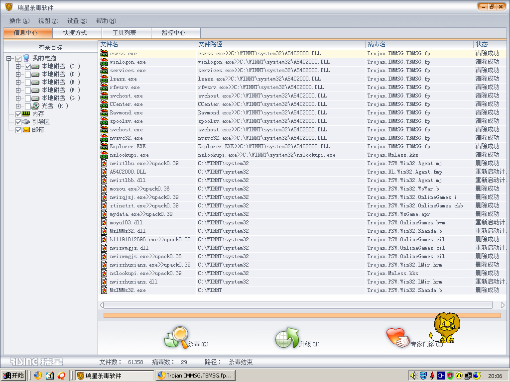 我电脑一上网就中了这样的病毒,杀毒软件自动关闭,清除过不到五分钟又有了。请问怎么彻底清除