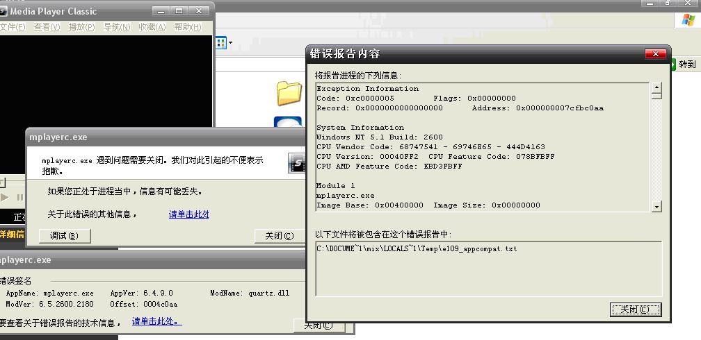 所有播放器不能用~贴报告求救~~~~