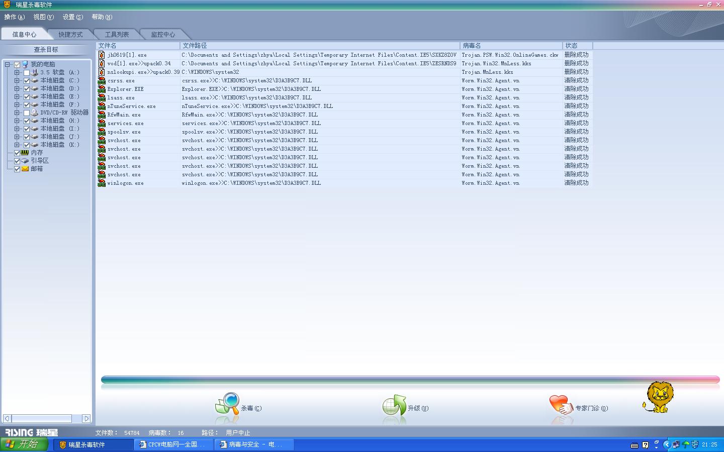 附件里是用瑞星杀毒的截图。