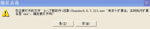 昨天下了个“迅雷Thunder5.6.7.323”,安装时瑞星提示有多个扩展名“exe”,后反复实验,原来是瑞星把“323”也误认为是“exe”所致,请修正。