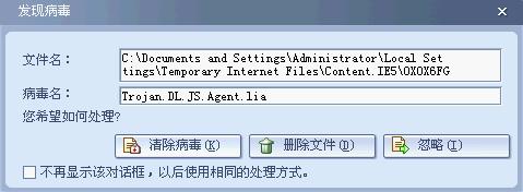 我都是删除文件的.可以删的.可是这个在隔离里面去了.好几天都是同样一个病毒.就是这个.