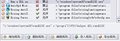 路径:C:\WINDOWS\system32\rundll32.exe  我用防火墙阻止了!它在防火墙里的"访问规则"里的路径显示我有点不明白,就好象是两个路径似的"C:\WINDOWS\system32\rundll32.exe" c:\progra~1\3721\helper.dll,rundll32