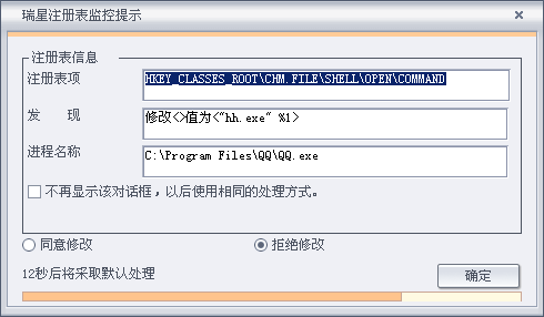 我在运行QQ自带的木马检查程序的时候出现如下提示,但是通过瑞星全面查杀也杀不出什么病毒,但是网上查了下这个hh.exe有可能是QQ杀手木马,我没次运行QQ木马检查的时候瑞星都会出现这个提示窗口?请问这是什么意思?