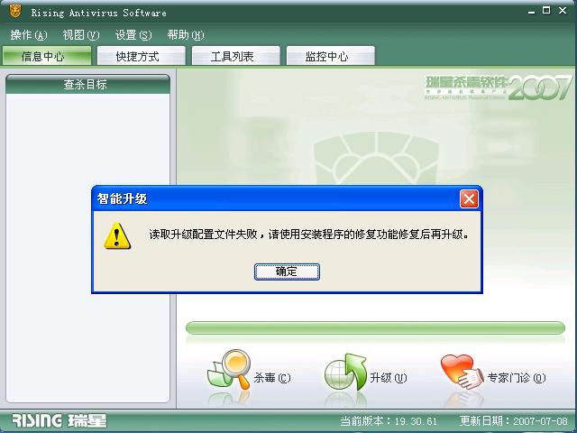 就开启杀毒软件 结果杀毒软件 杀不了毒,升级也升不了``