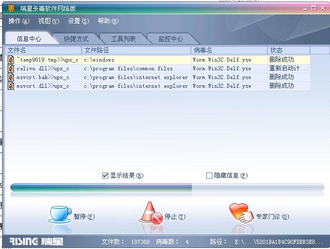 把瑞星升到最新版后,进入安全模式杀一次毒。