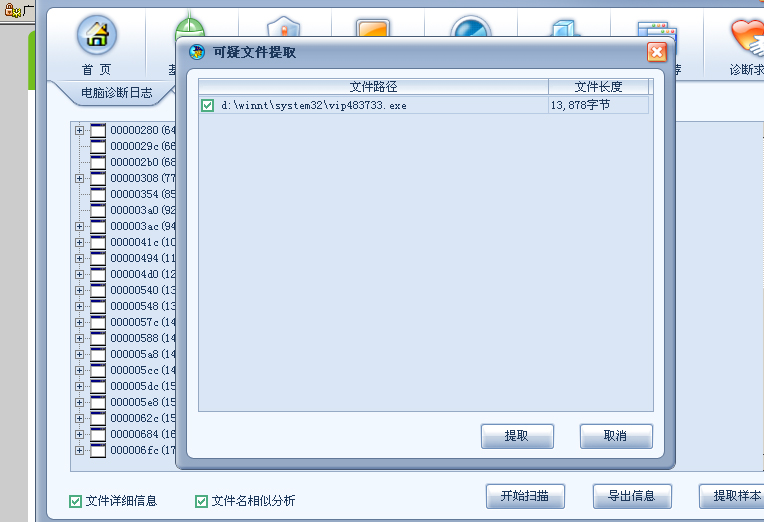 今天,再上网时。链上后,IE访问不了网页。查看进程,发现有个"vip483733.exe",手动终止不了。用KAKA扫描,没有发现“流氓”。再用KAKA的电脑诊断,发现它是可疑文件,再用KAKA将它终止后,可以上网。(vip483733.exe位于WINNT\SYSTEM32\)