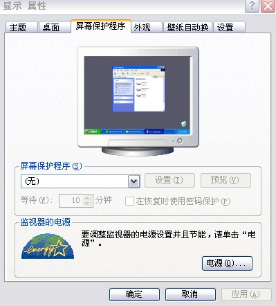 我的XP,屏幕保护里都不能设置,里面就一个“无”。如果我看电影看10分钟有要去动一下电脑,很麻烦,但是又不能设置,不知道怎么办才好,