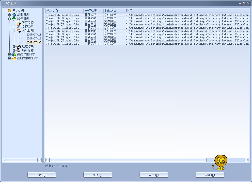 病毒路径:C:\Documents and Settings\Administrator\Local Settings\Temporary Internet Files\Content.IE5\58NKY817