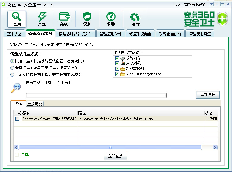360报瑞星防火墙中的rfwproxy.exe为病毒是误报