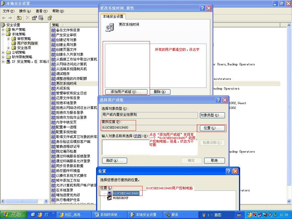 7、组策略中已把修改系统时间的用户/组的权限全部去掉。