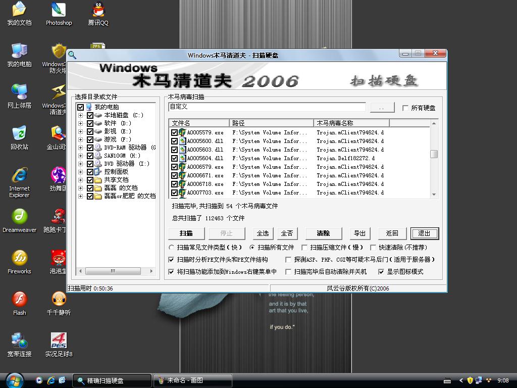 关闭所有驱动器上的系统还原功能后,再打开C盘的系统还原功能,然后再用木马清道夫扫描下。